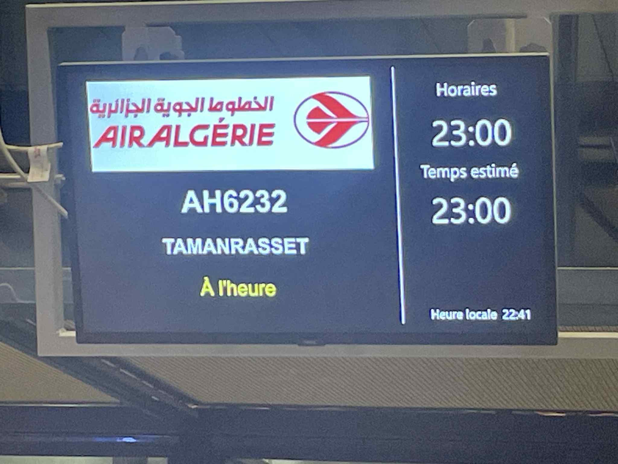 • Le décollage du vol intérieur vers Djanet est prévu à 23h.