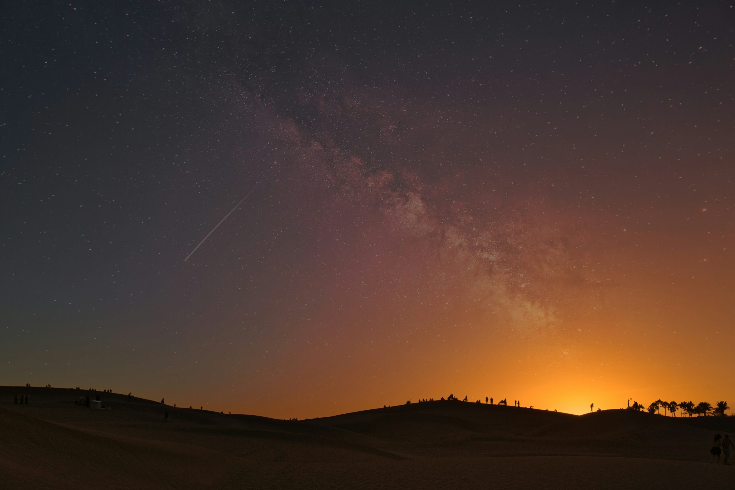 Coucher de soleil depuis le sommet de la grande dune — à pied ou à dos de dromadaire. Dîner sous les étoiles. Premier cercle d’intention autour du feu : chaque participant dit en une phrase ce qu’il vient chercher dans ce désert.
